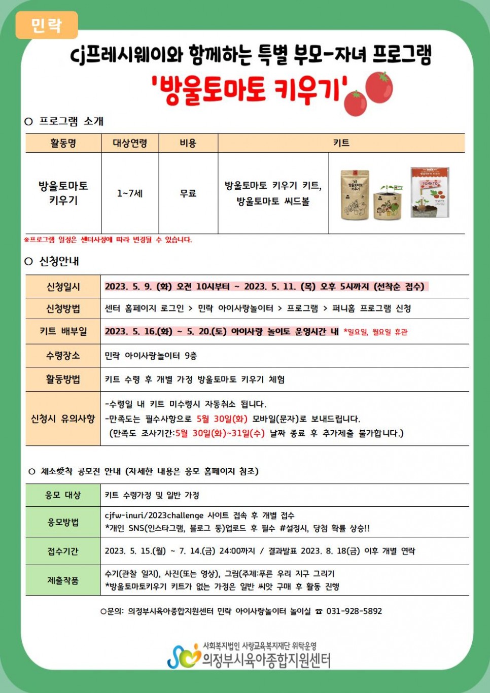 [민락] 특별 부모 자녀 프로그램 '방울토마토 키우기' 키트 신청 안내