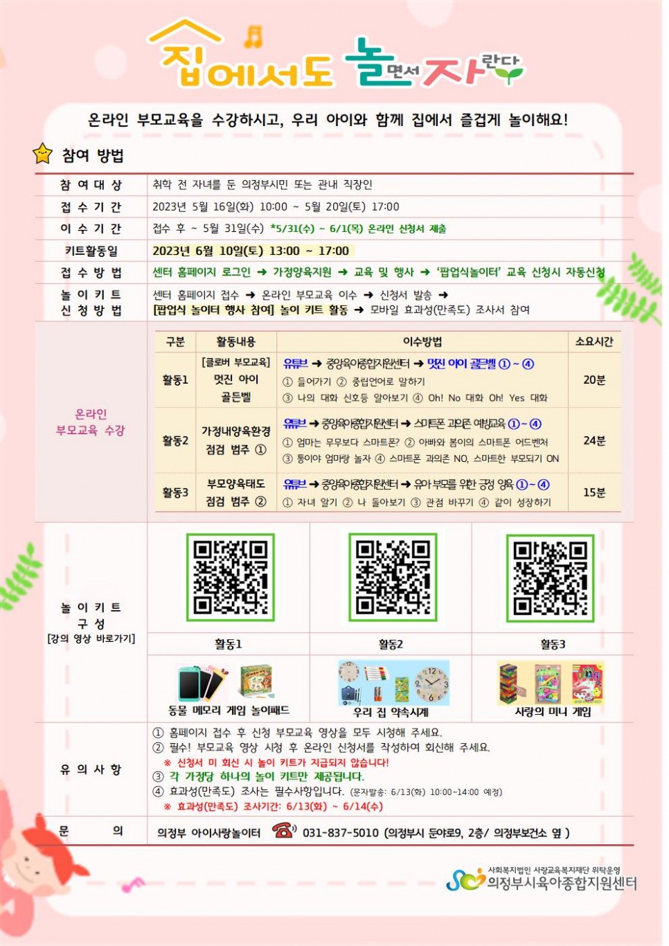 - 이전글6월 가족참여행사 '팝업식 놀이터-아자아자(입체 영화관), 숲체험 프로그램' 안내(별도신청) 23.05.04