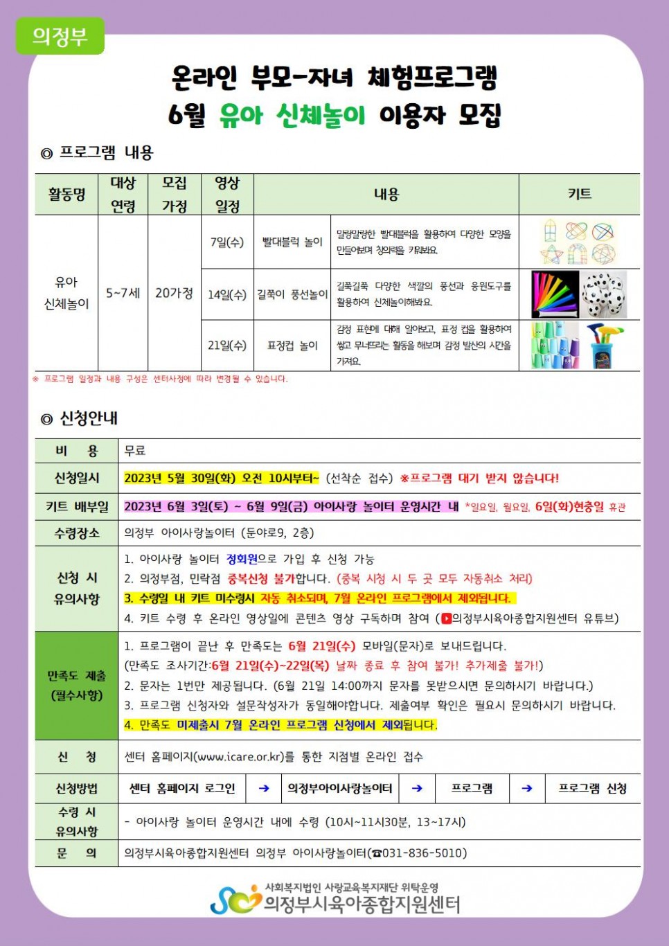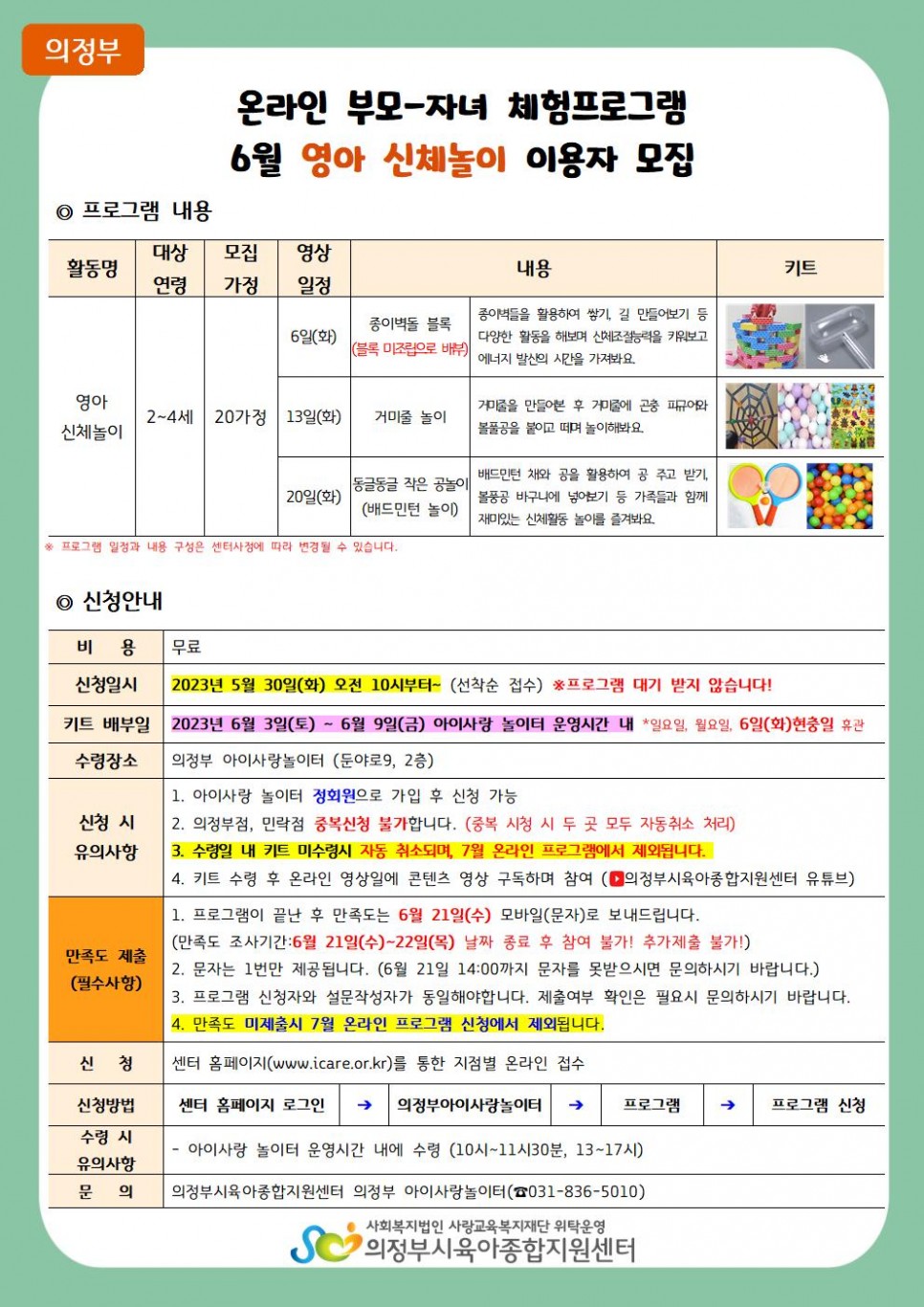 [의정부] 6월 온라인 부모-자녀 체험프로그램 '영아 신체놀이, 유아 신체놀이' 신청안내 > 공지사항