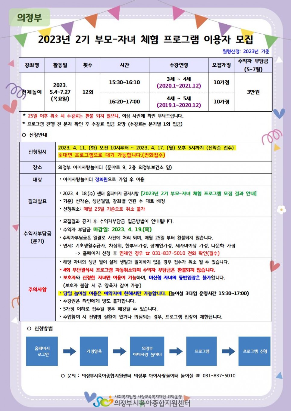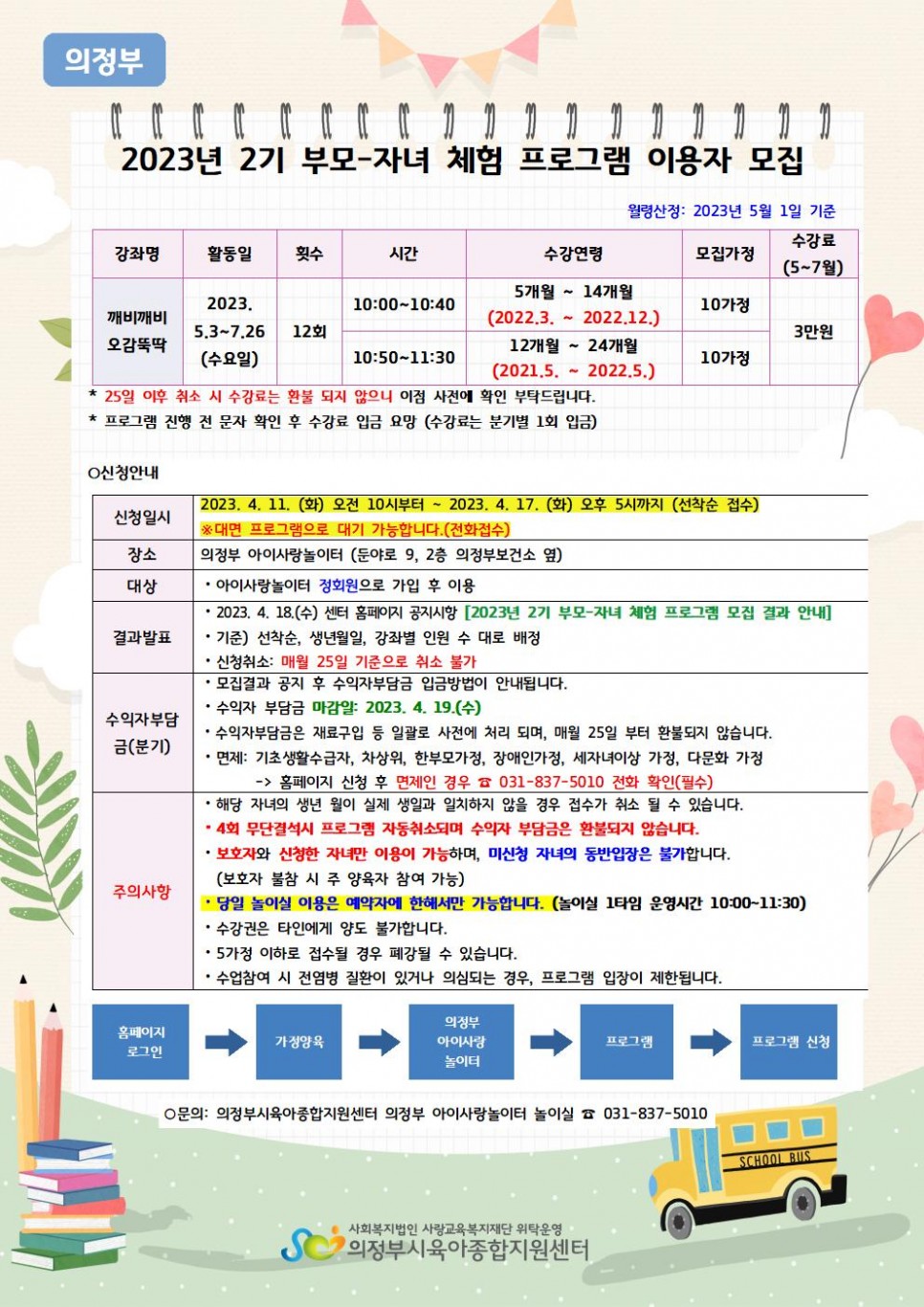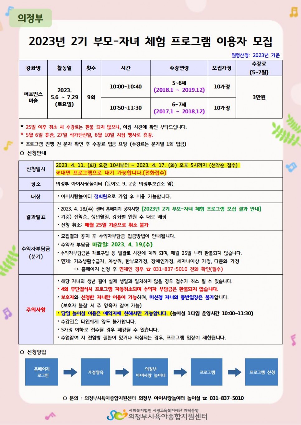[의정부]2023년 2기 부모-자녀 체험 프로그램 이용자 모집(깨비깨비 오감뚝딱, 신체놀이, 퍼포먼스 미술)