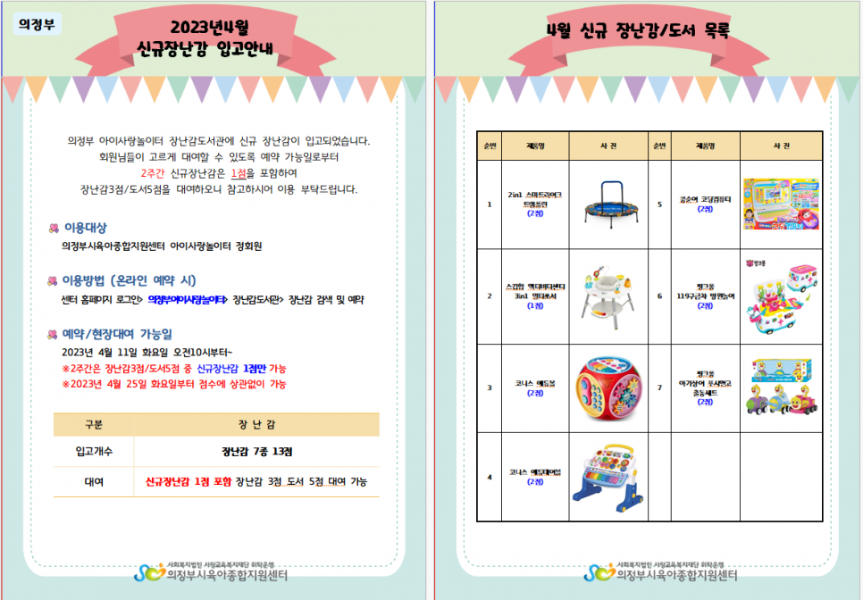 [의정부] 2023년 4월 장난감도서관 신규 장난감 입고 안내