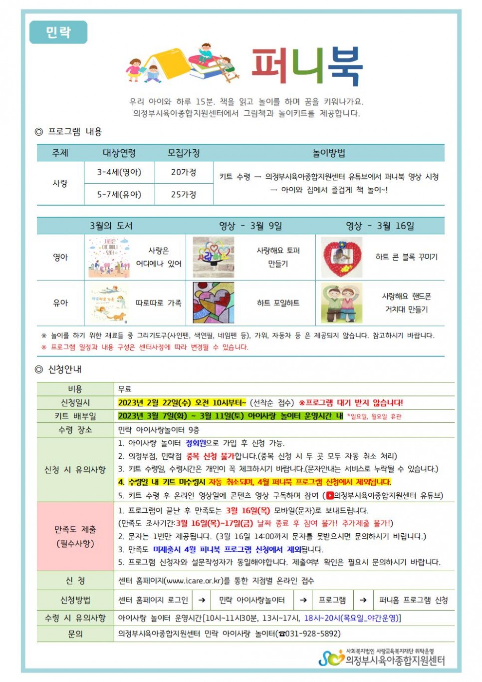 [의정부, 민락] 책이랑 즐겁게 놀자! 퍼니북(3월) 신청안내 > 공지사항