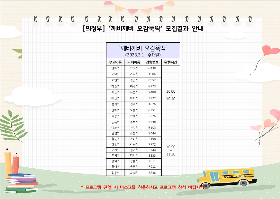 [의정부] 2023년 1기 부모-자녀 체험 프로그램 '깨비깨비 오감뚝딱' 모집결과 안내