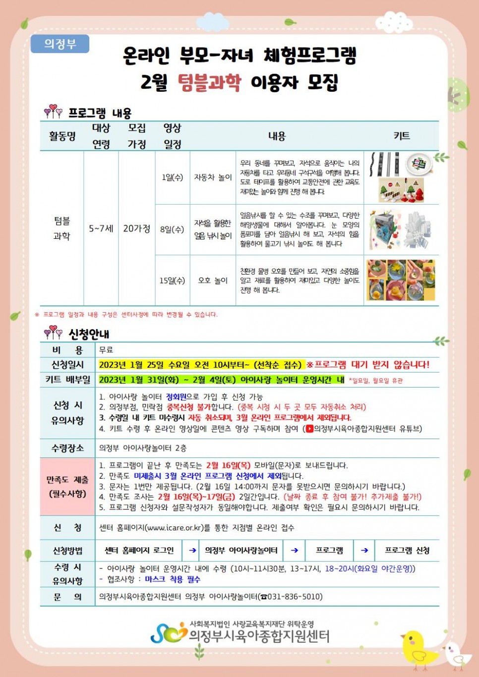 [의정부] 2월 온라인 부모-자녀 체험프로그램 '텀블오감, 텀블과학' 신청안내