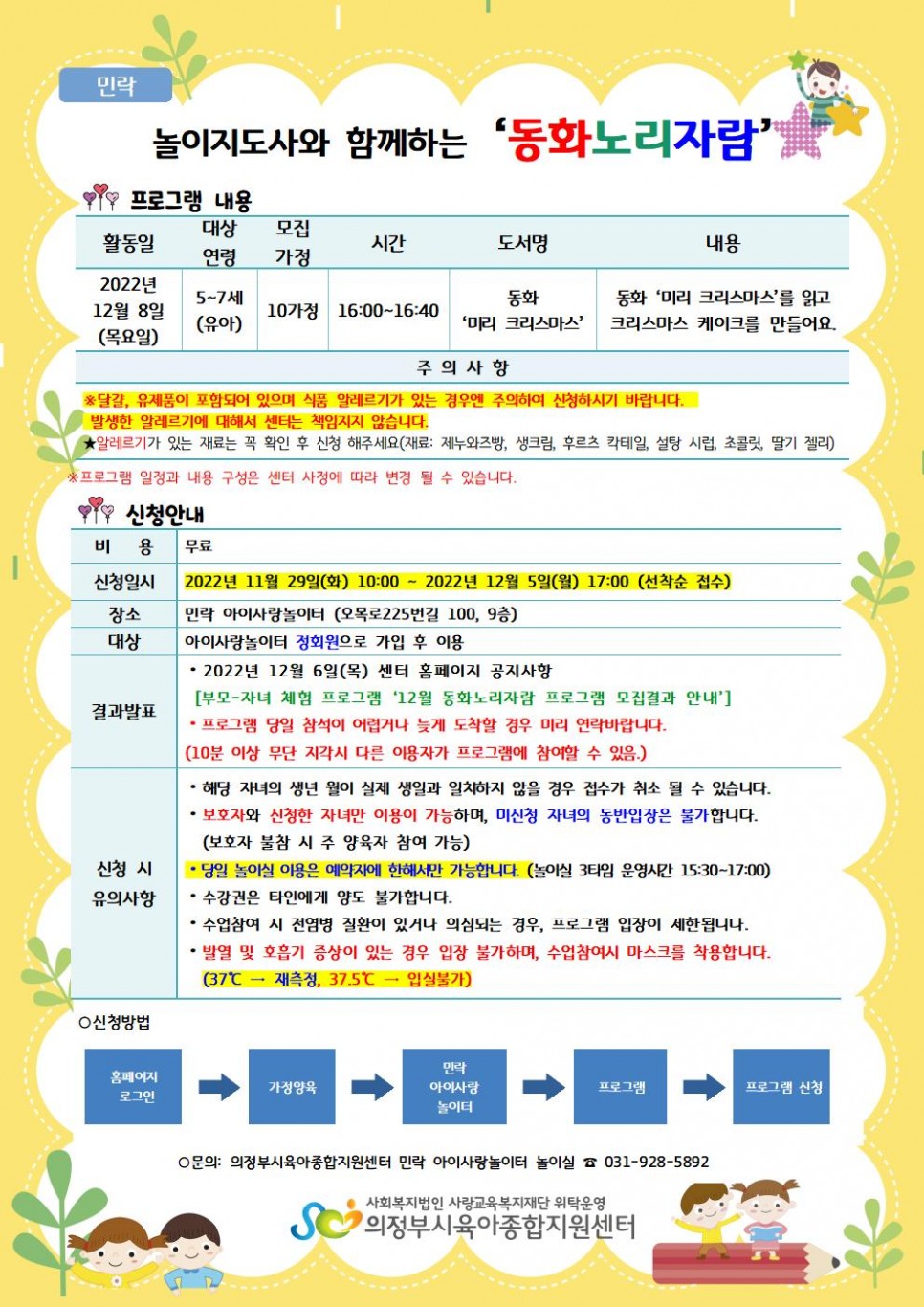 [민락]부모-자녀 체험 프로그램 ‘12월 동화노리자람 프로그램' 이용자 모집 > 공지사항