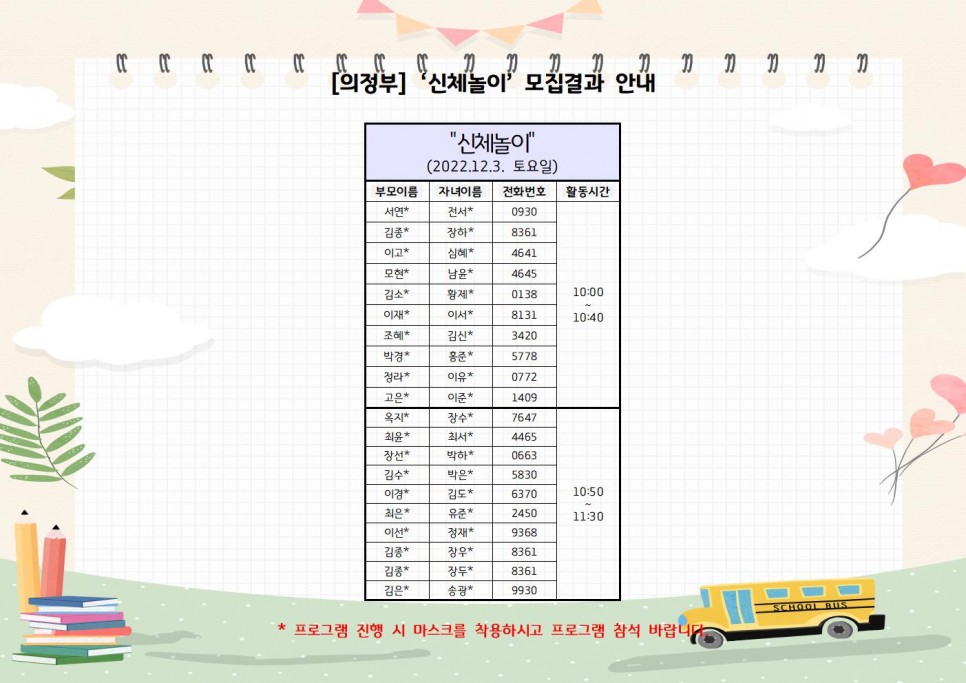 [의정부] 2022년 부모-자녀 프로그램 특강 요리쿡 조리쿡, 신체놀이 모집결과 안내