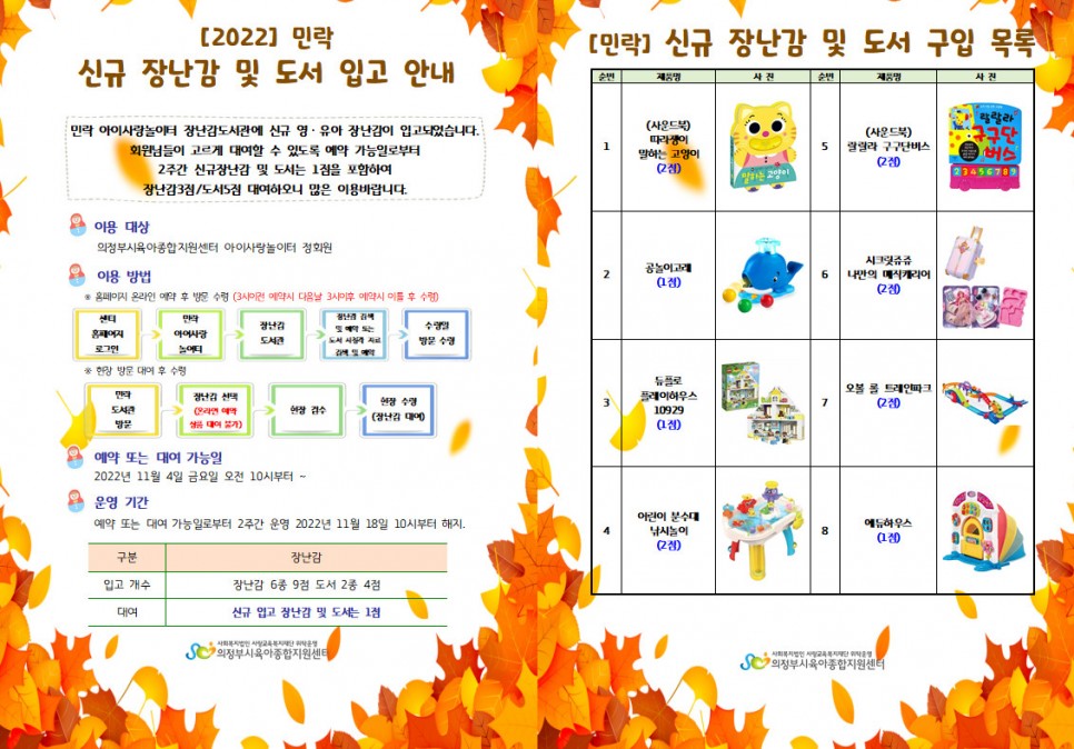 [민락] 2022년 11월 장난감도서관 신규 장난감 입고 안내