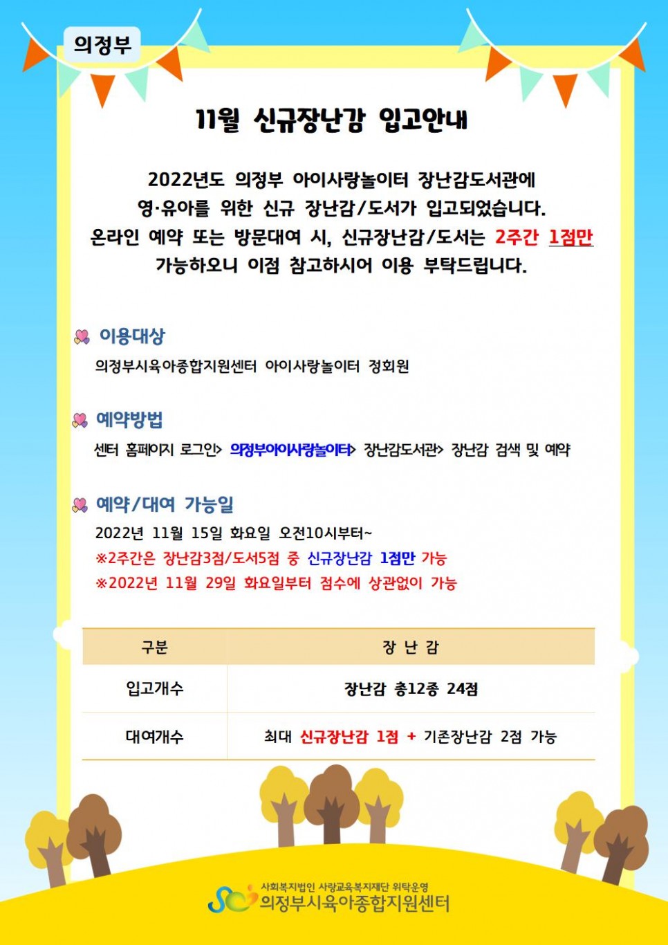 [의정부] 2022년 11월 장난감도서관 신규 장난감 입고 안내