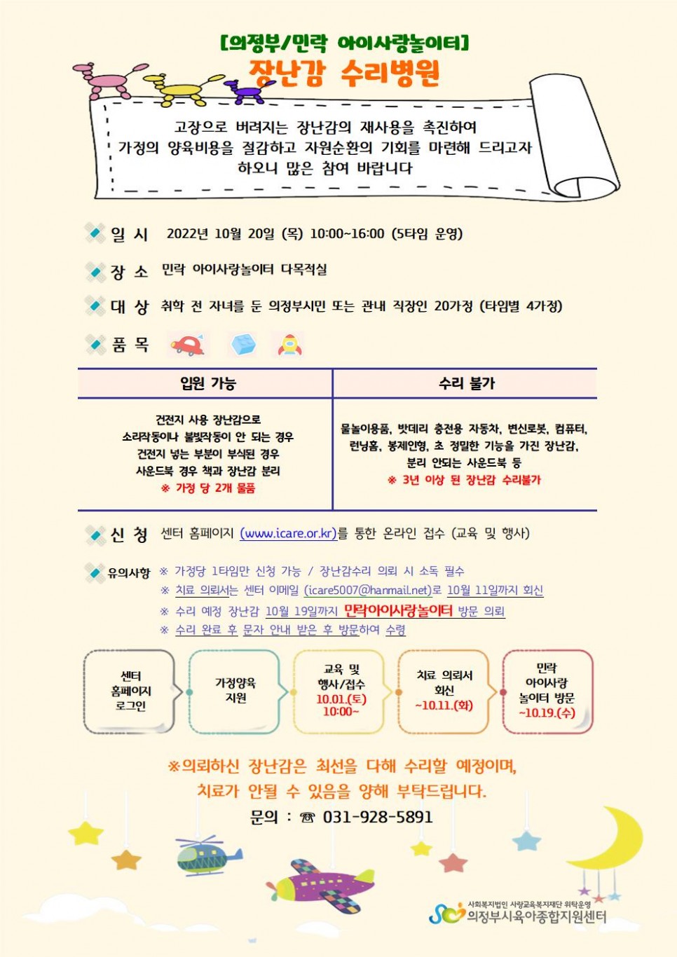 아이사랑놀이터 10월 장난감 수리병원 안내 > 공지사항