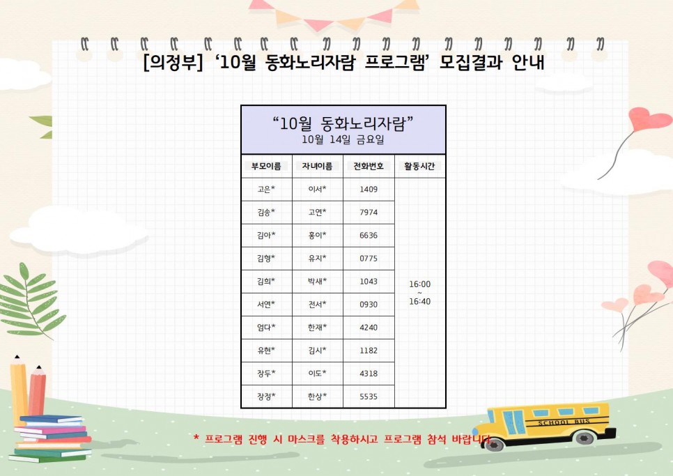 [의정부]부모-자녀 체험 프로그램 ‘10월 동화노리자람 프로그램 모집결과 안내’