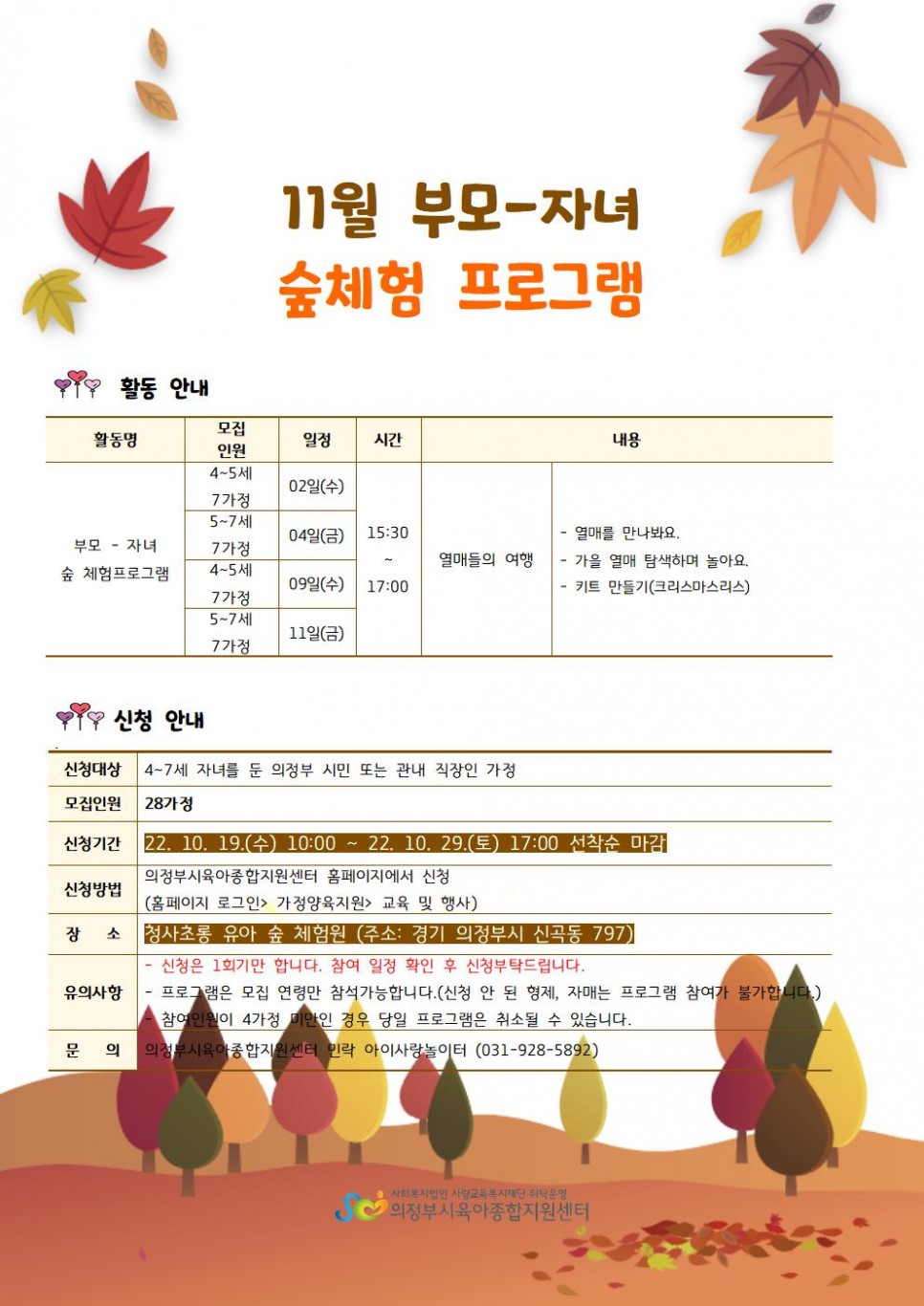 특화사업 - 11월 부모-자녀 숲 체험프로그램 안내 > 공지사항