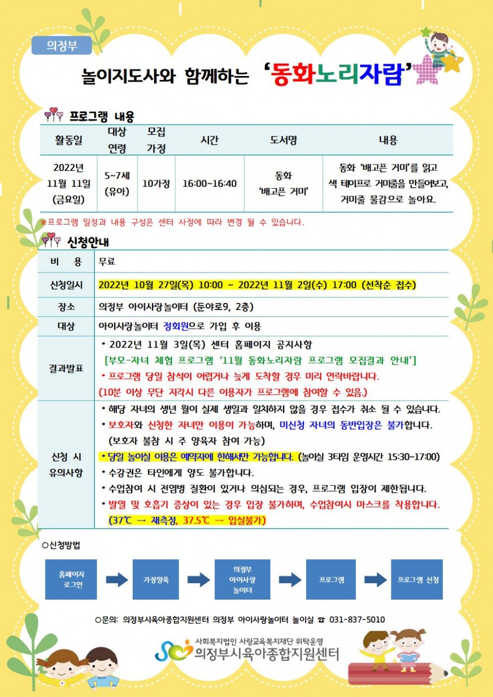 [의정부]부모-자녀 체험 프로그램 ‘11월 동화노리자람 프로그램' 이용자 모집 > 공지사항
