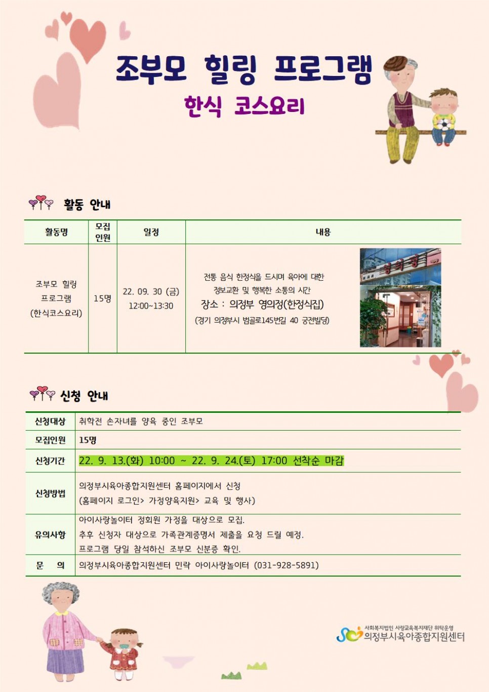 조부모 힐링프로그램 - 한식 코스요리 > 공지사항