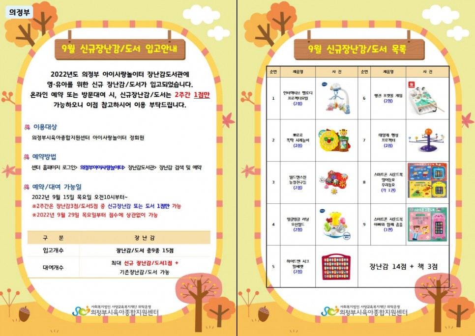 [의정부] 2022년 9월 장난감도서관 신규 장난감 입고 안내