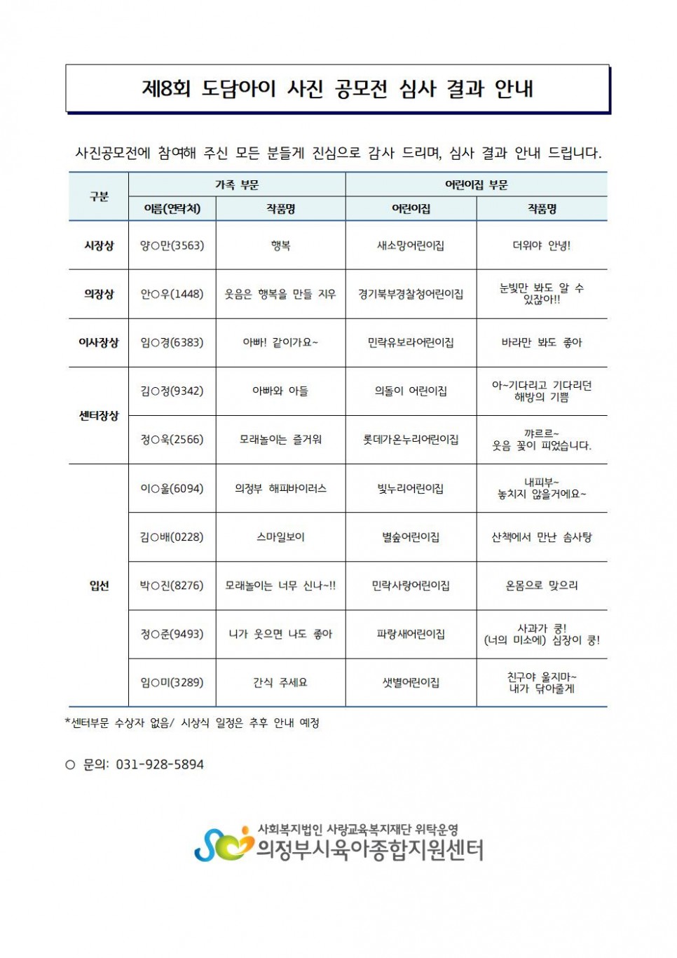 제8회 도담아이 사진 공모전 심사결과 > 공지사항