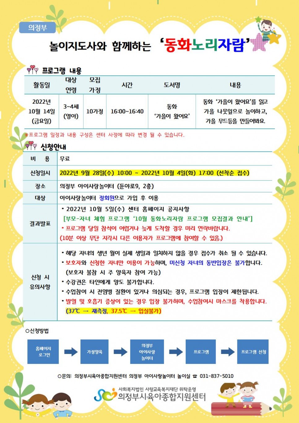 [의정부]부모-자녀 체험 프로그램 ‘10월 동화노리자람 프로그램' 이용자 모집 > 공지사항