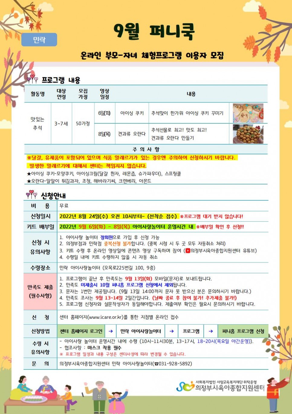 [의정부, 민락] 9월 퍼니쿡 '맛있는 추석' 이용자 모집