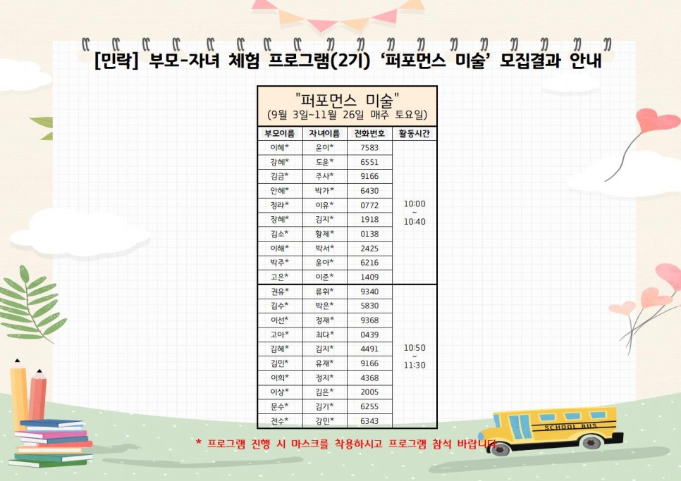 [민락] 2022년 2기 부모-자녀 체험 프로그램 '퍼포먼스 미술' 모집결과 안내 > 공지사항