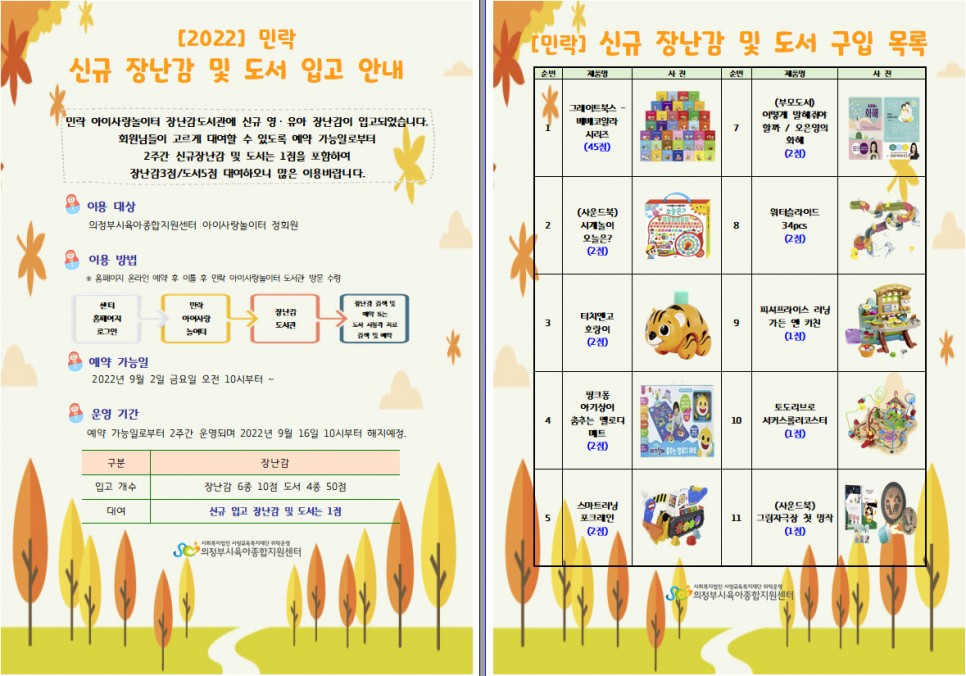 [민락] 2022년 9월 장난감도서관 신규 장난감 입고 안내