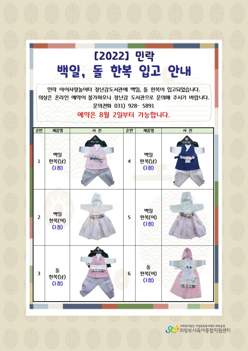[민락] 2022년 장난감도서관 한복 입고 안내