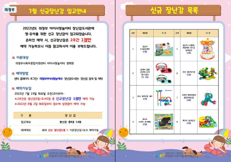 [의정부] 2022년 7월 장난감도서관 신규 장난감 입고 안내