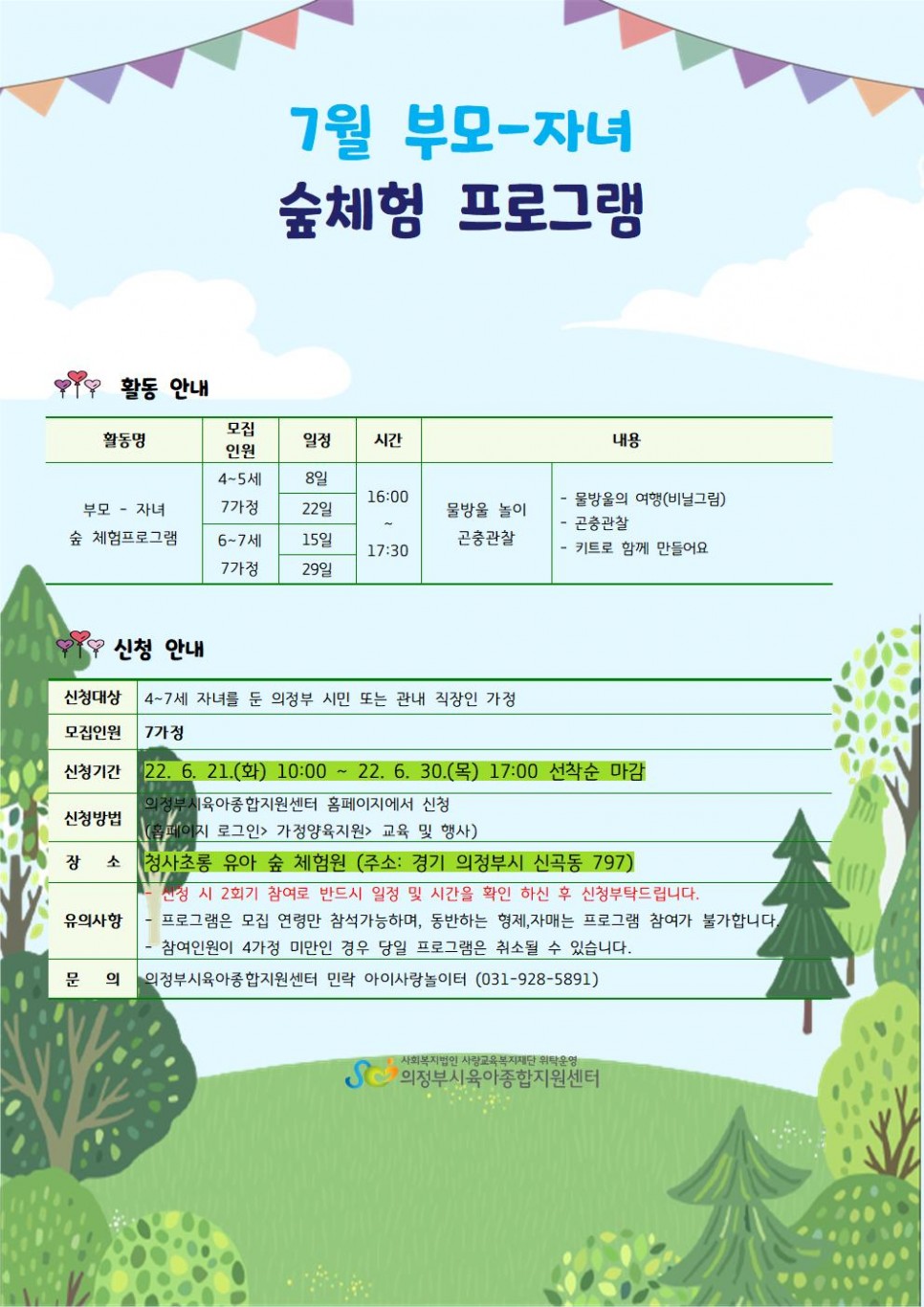 특화사업 - 7월 부모-자녀 숲 체험프로그램 안내