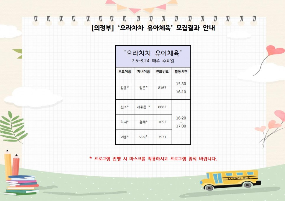 [의정부]부모-자녀 체험프로그램 으라차차 체육 모집결과 발표 > 공지사항