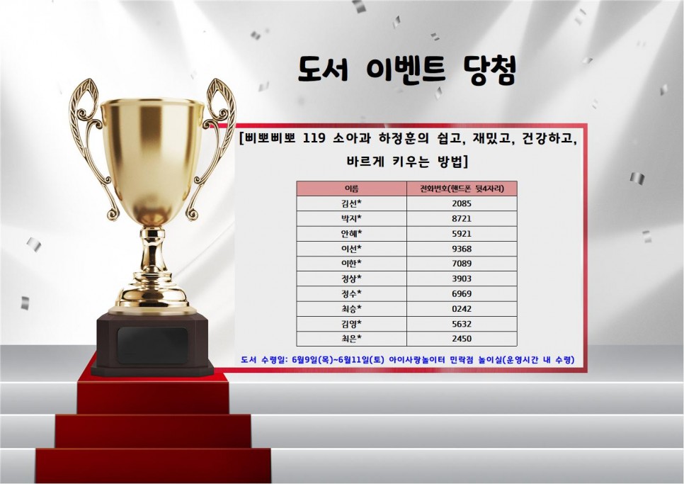 [삐뽀삐뽀 119 소아과 하정훈의 쉽고, 재밌고, 건강하고, 바르게 키우는 방법 도서 이벤트 당첨자 결과발표] > 공지사항