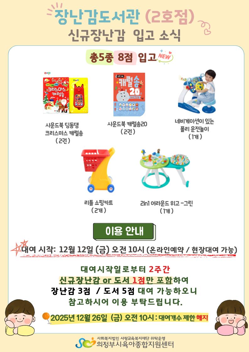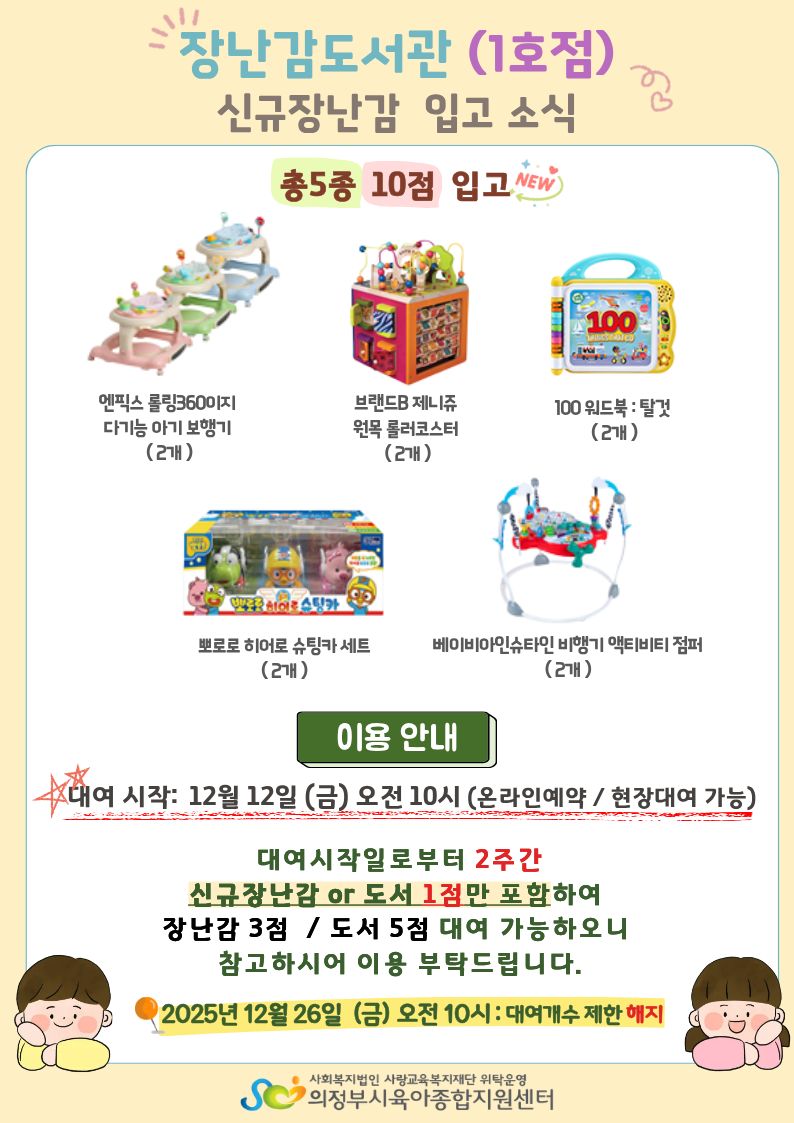 [민락, 의정부] 2025년 12월 장난감 도서관 신규 장난감 입고 안내 > 공지사항