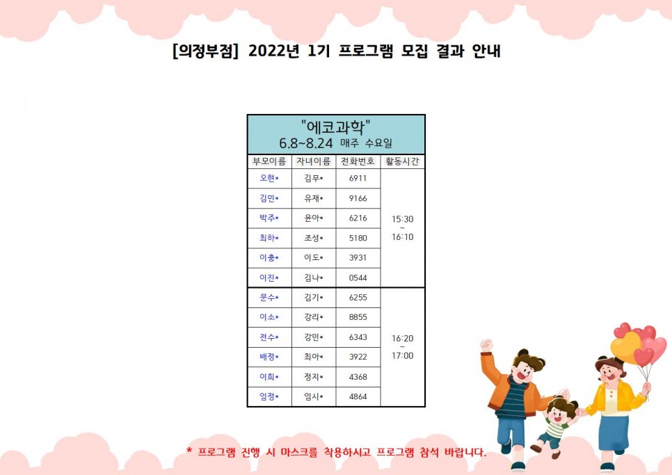 [의정부] 2022년 1기 의정부점 프로그램 모집 결과 안내