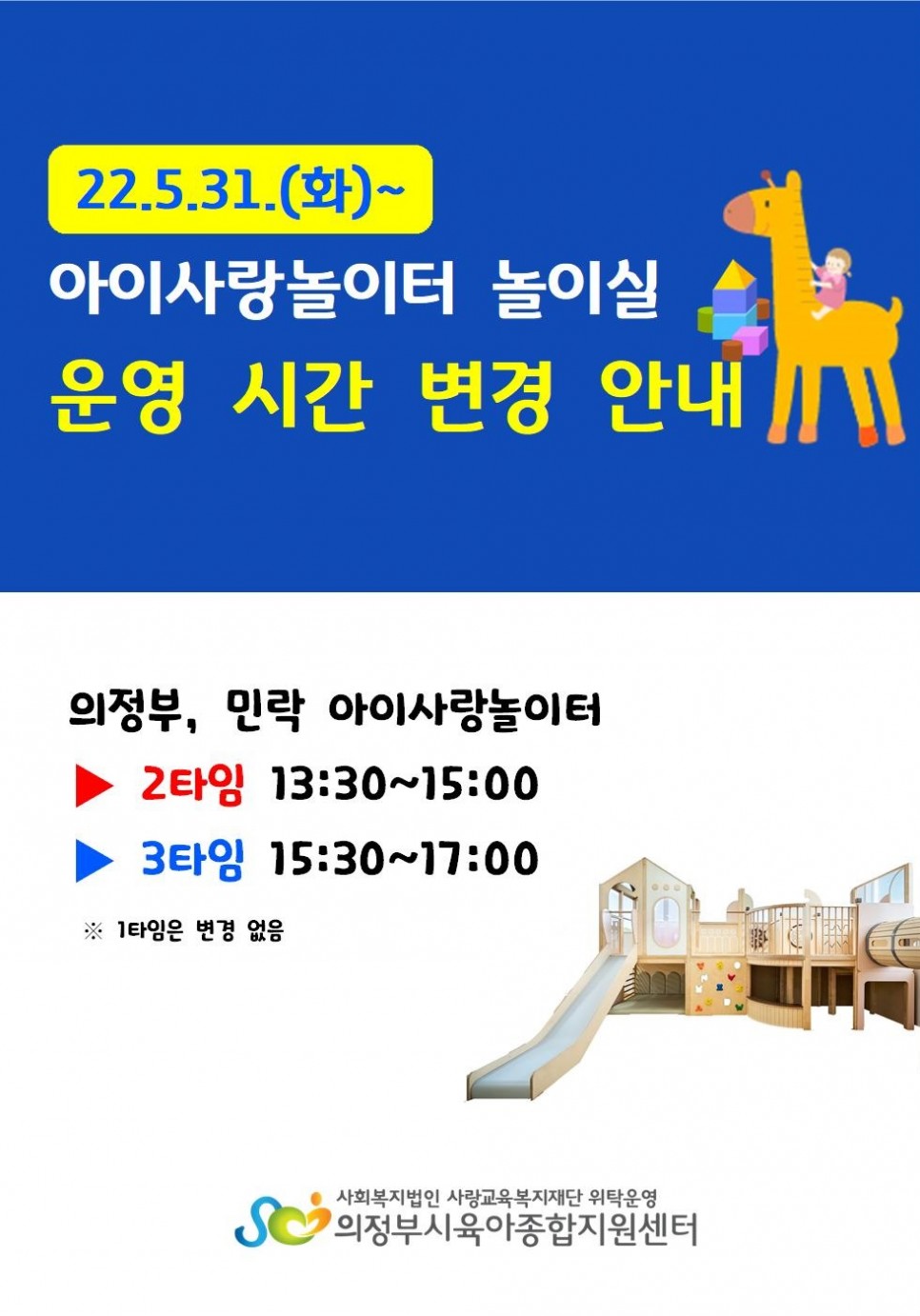 아이사랑놀이터 놀이실 운영시간 변경 안내 > 공지사항