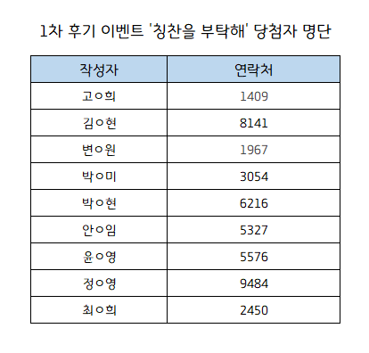 22년 1차 후기 이벤트 '칭찬을 부탁해' 당첨자 명단
