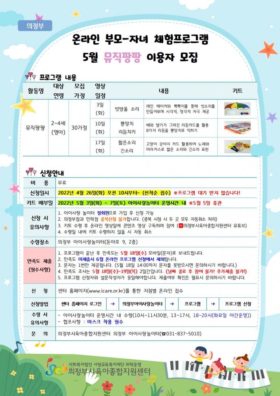[의정부, 민락] 온라인 부모-자녀 체험프로그램 5월 '뮤직팡팡' 이용자 모집