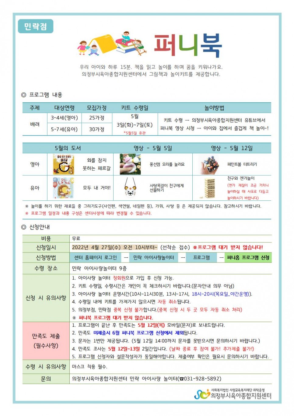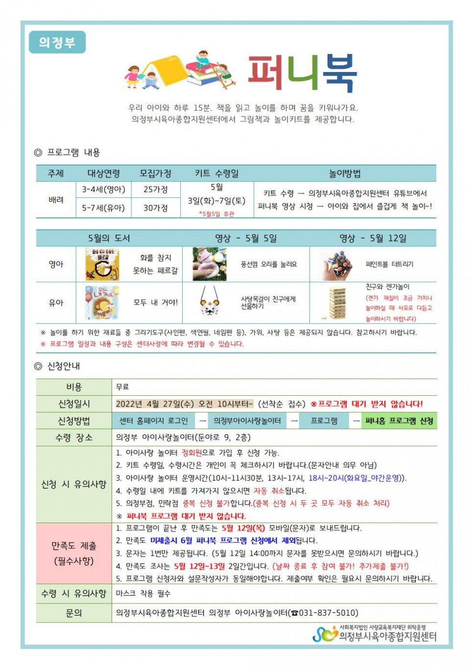 [의정부, 민락] 책이랑 즐겁게 놀자! 퍼니북(5월) 신청 안내