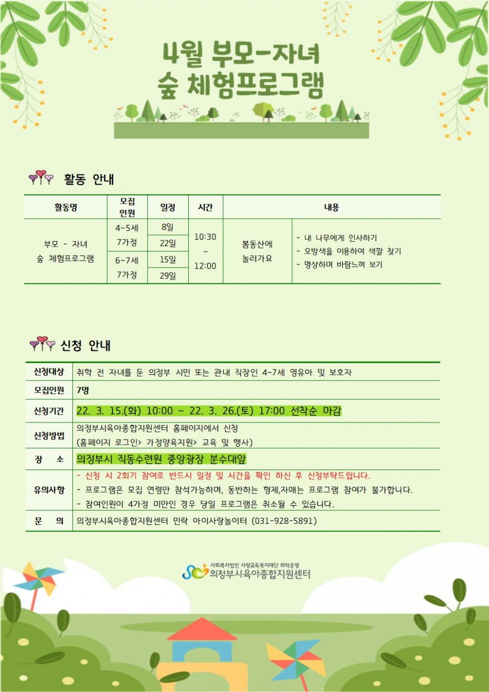 특화사업 - 부모-자녀 숲 체험프로그램 안내 > 공지사항