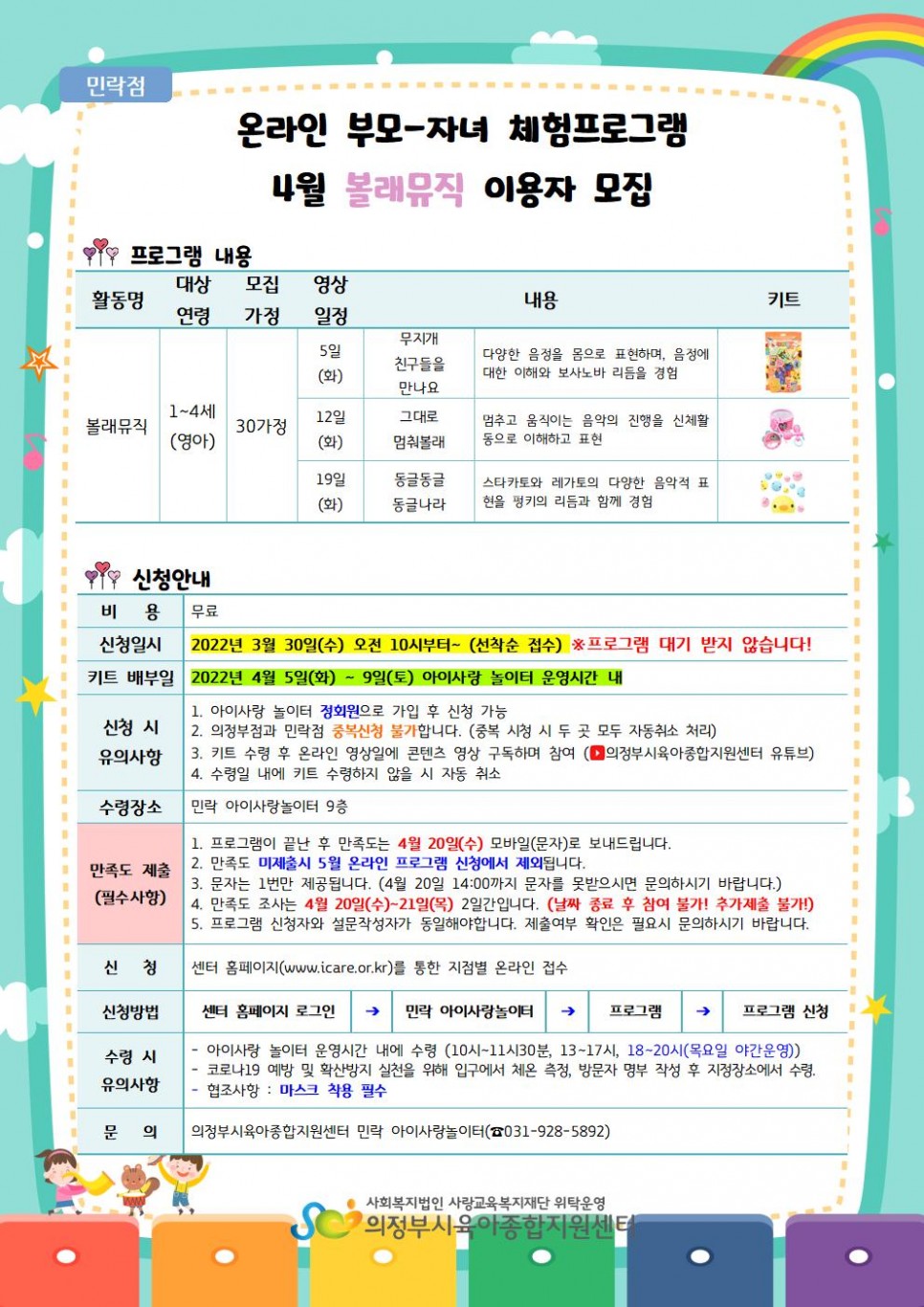 [의정부,민락] 온라인 부모-자녀 체험프로그램 4월 '볼래뮤직' 이용자 모집
