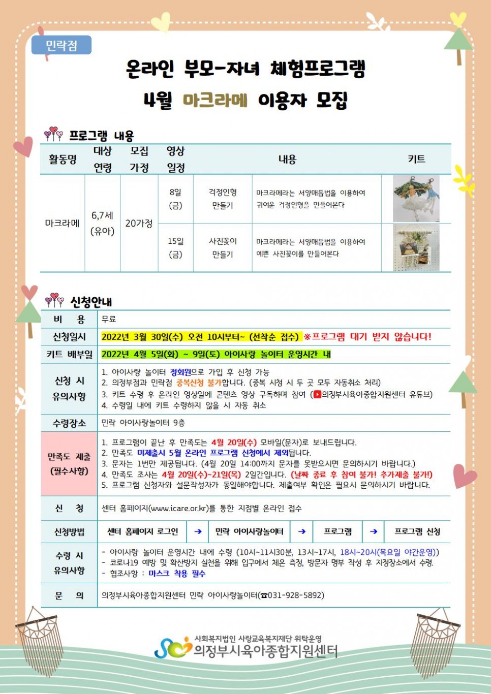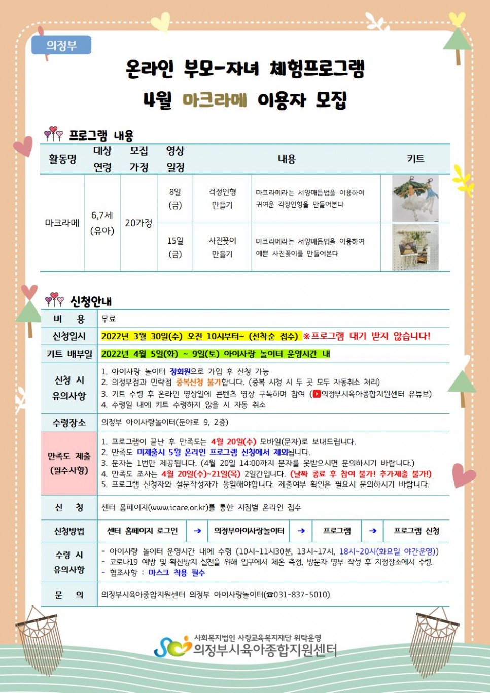 [의정부,민락] 온라인 부모-자녀 체험프로그램 4월 '마크라메' 이용자 모집