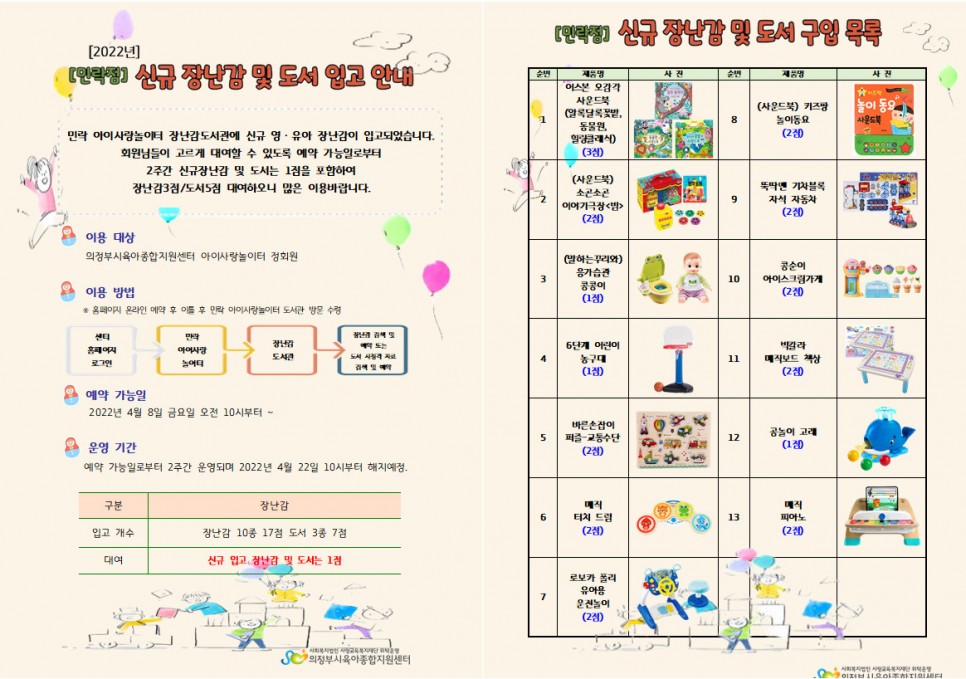 [민락] 2022년 4월 장난감도서관 신규 장난감 입고 안내
