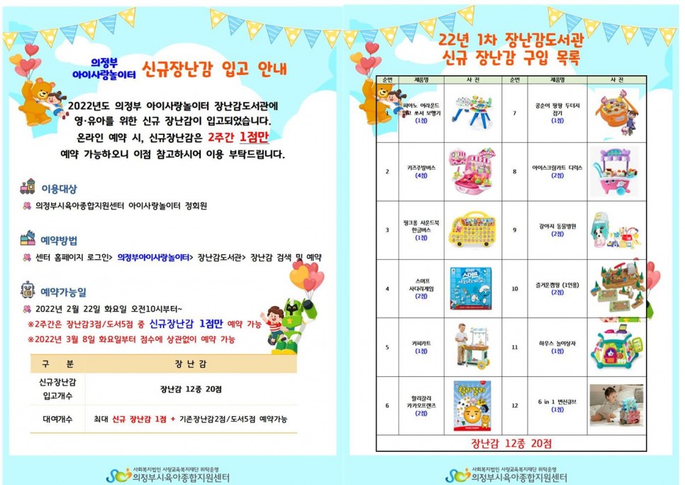 [의정부] 2022년 2월 장난감도서관 신규 장난감 입고 안내 > 공지사항