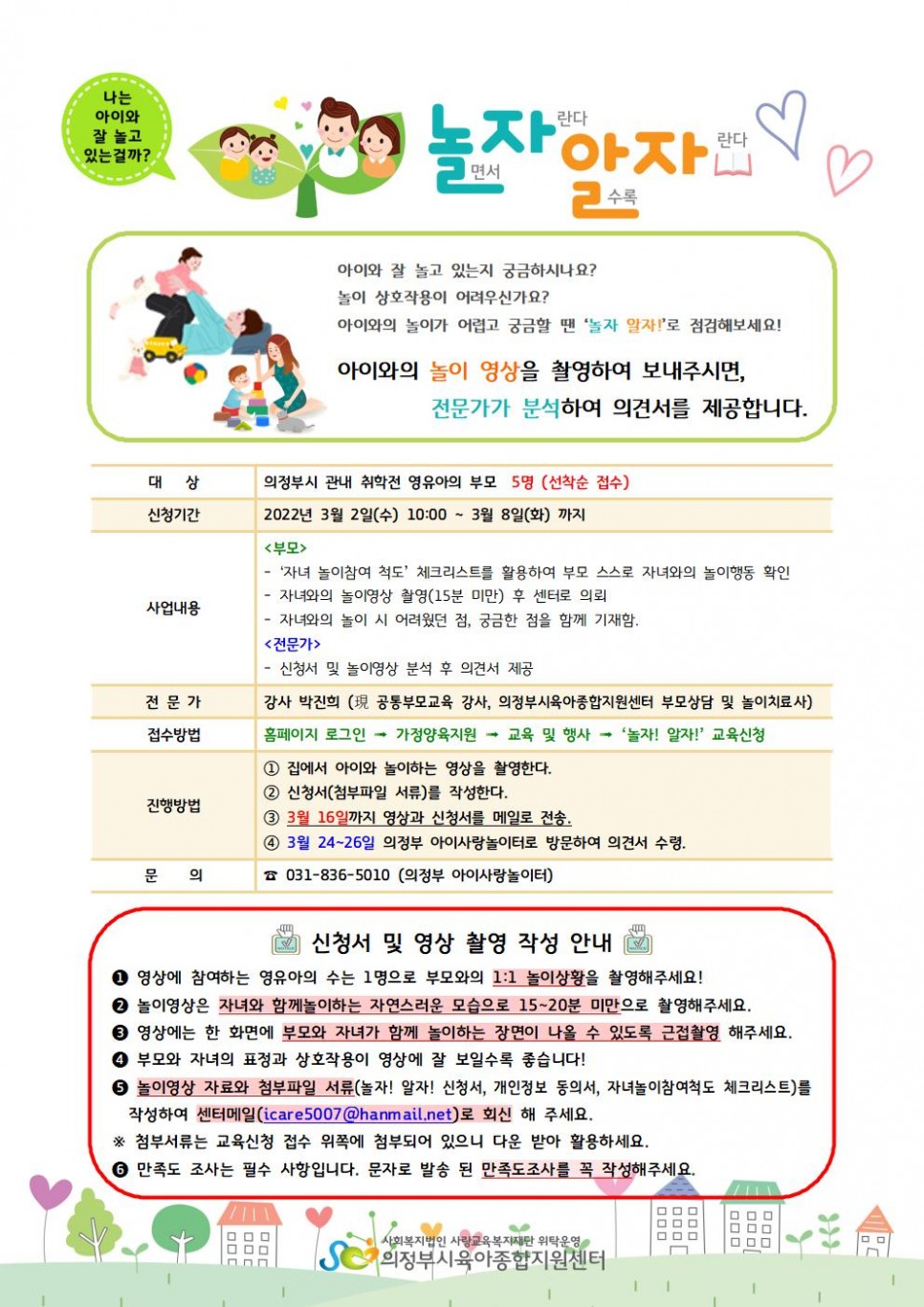 [의정부점] '놀(면서) 자(란다)! 알(수록) 자(란다)! (3월) 신청 안내 > 공지사항