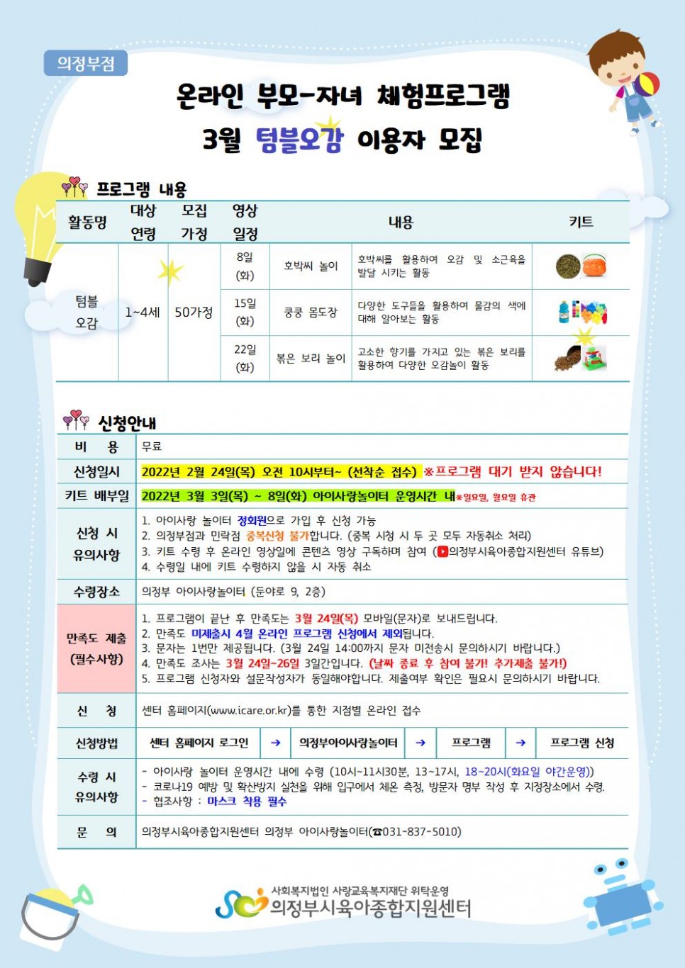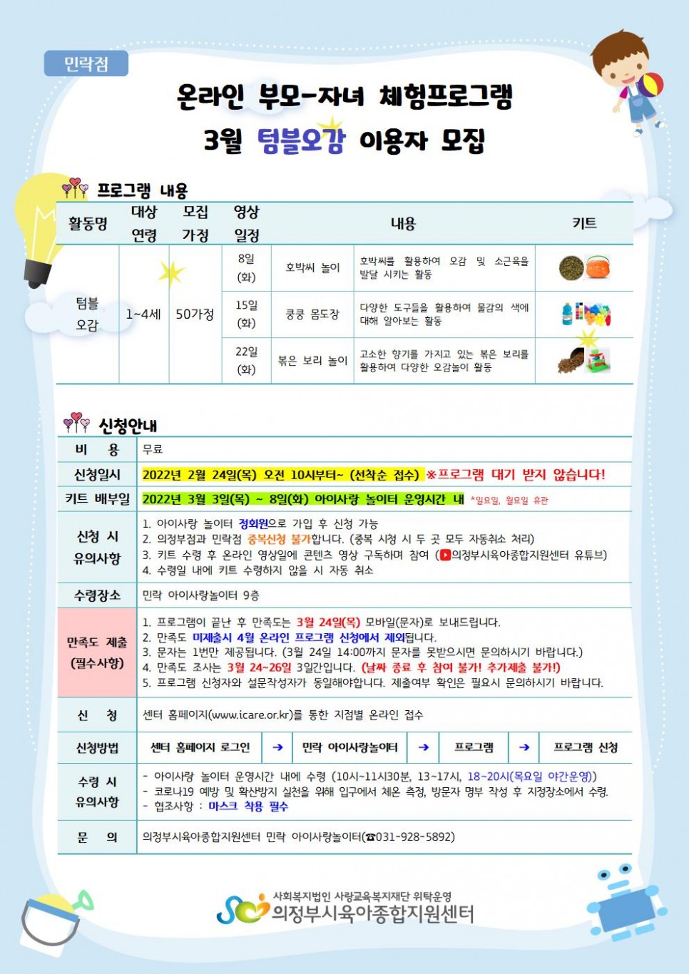 [의정부,민락] 온라인 부모-자녀 체험프로그램 3월 '텀블오감' 이용자 모집