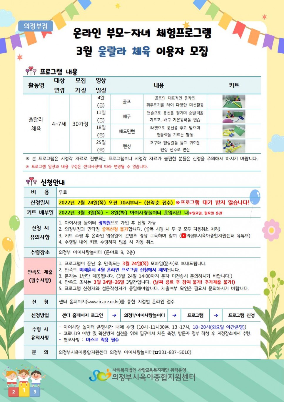 [의정부,민락] 온라인 부모-자녀 체험프로그램 3월 '울랄라체육' 이용자 모집 > 공지사항