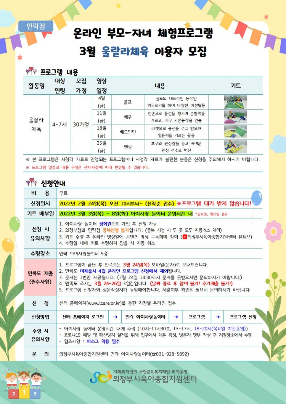 [의정부,민락] 온라인 부모-자녀 체험프로그램 3월 '울랄라체육' 이용자 모집