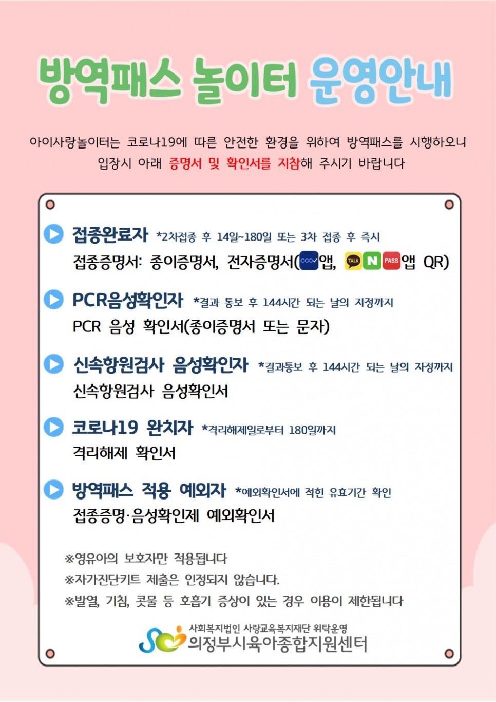 대상자별 방역패스 증명서 및 확인서 안내 > 공지사항