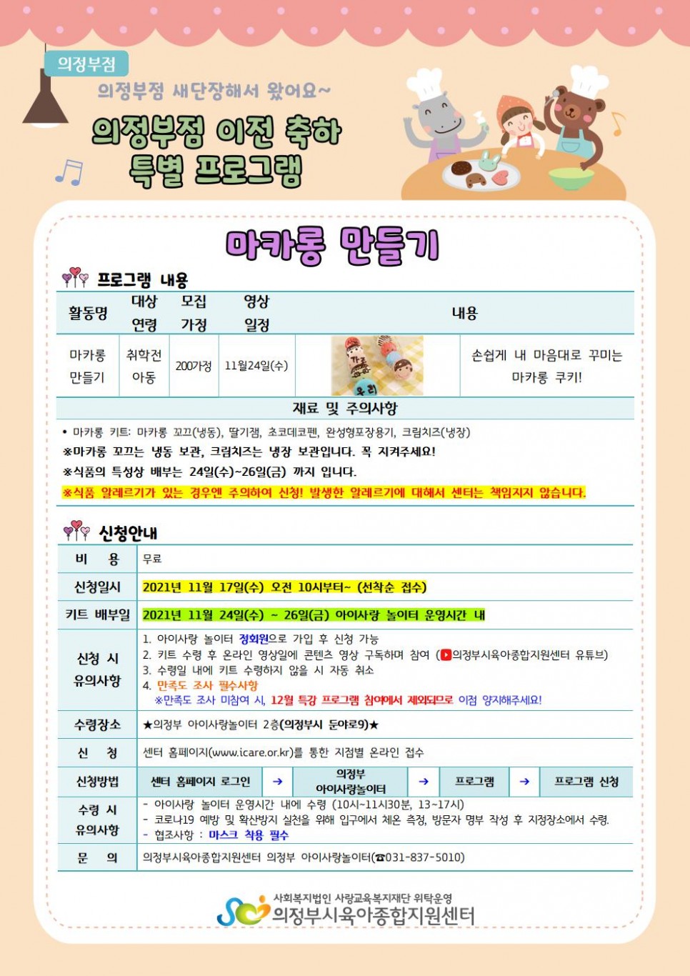 [의정부점] 의정부점 이전 축하 특별 프로그램_마카롱 만들기 > 공지사항
