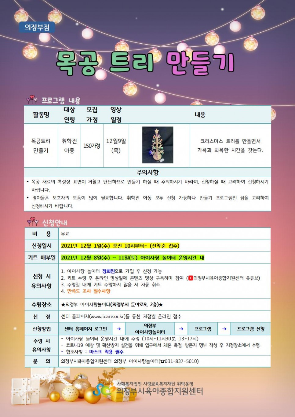 [의정부점] 온라인 부모-자녀 체험 특강 프로그램_크리스마스 목공 트리 만들기 > 공지사항