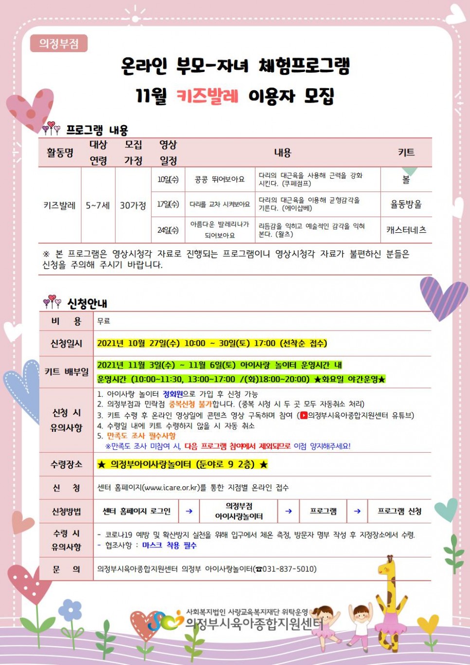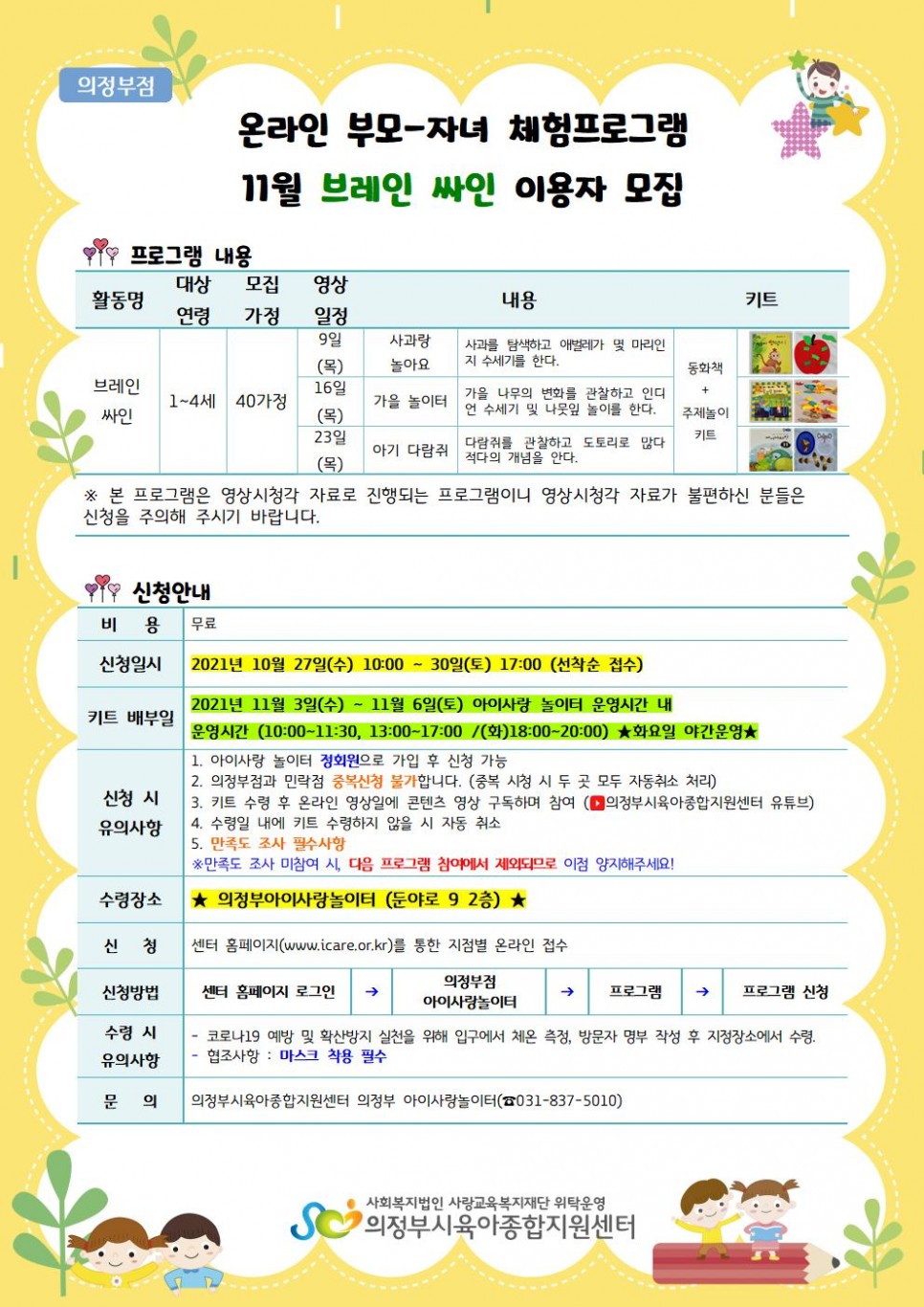 [의정부] 온라인 부모-자녀 체험프로그램 11월 이용자 모집 > 공지사항