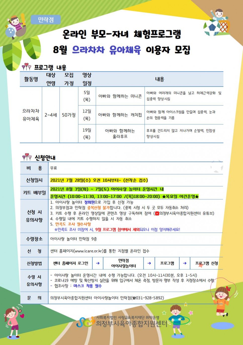 [의정부,민락] 온라인 부모-자녀 체험프로그램 8월 '으라차차 유아체육' 이용자 모집
