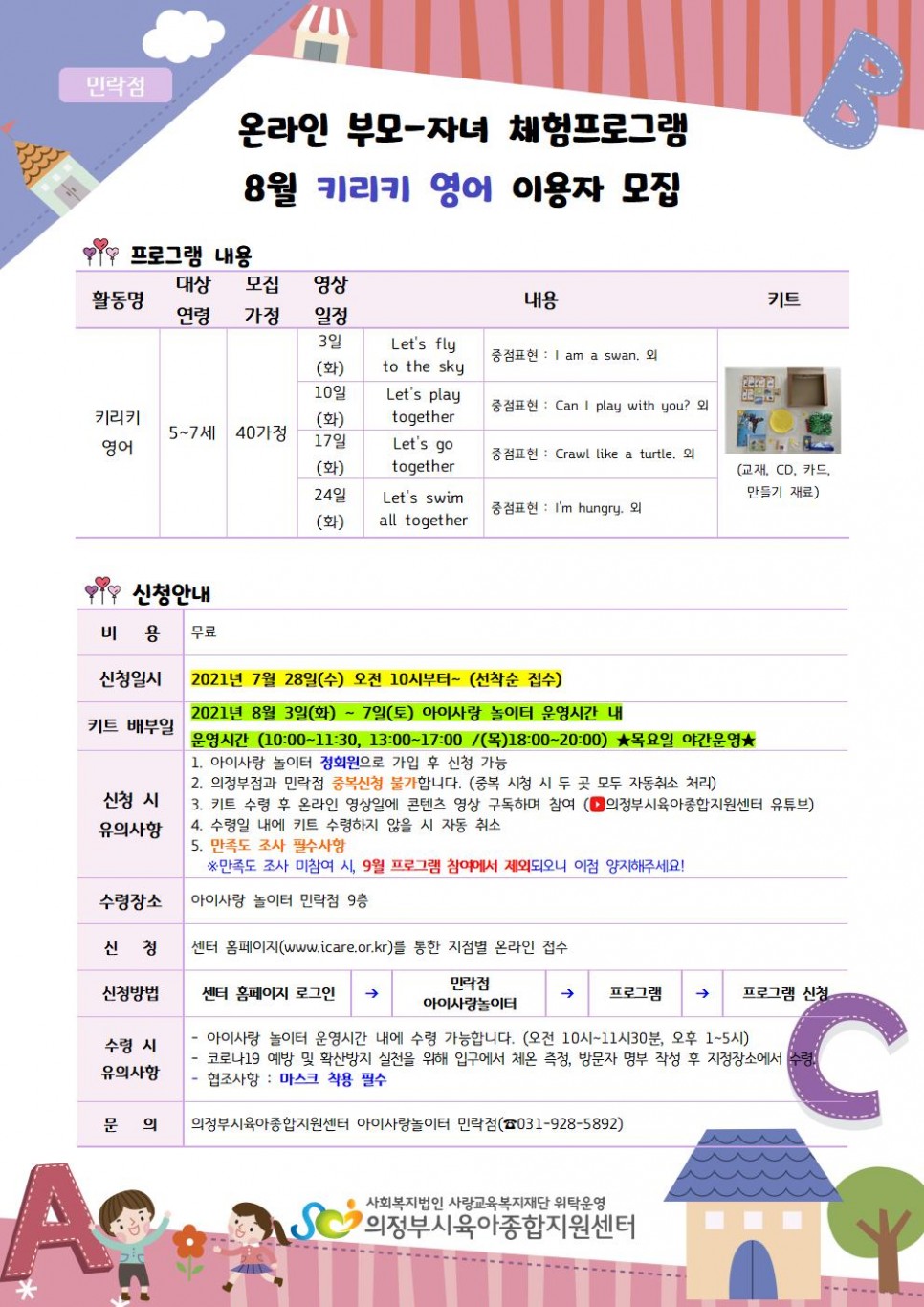 [의정부,민락] 온라인 부모-자녀 체험프로그램 8월 '키리키 영어' 이용자 모집 > 공지사항