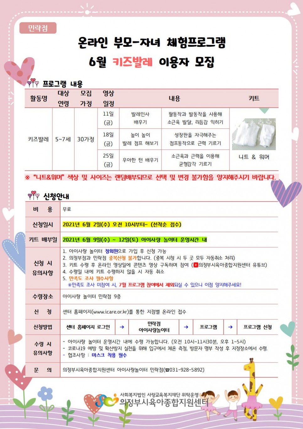 [의정부점,민락점] 온라인 부모-자녀 체험프로그램 키즈발레 6월 이용자 모집 > 공지사항